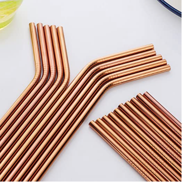 Rose Gold Stainless Steel Reusable Straw - Straight or Bent style